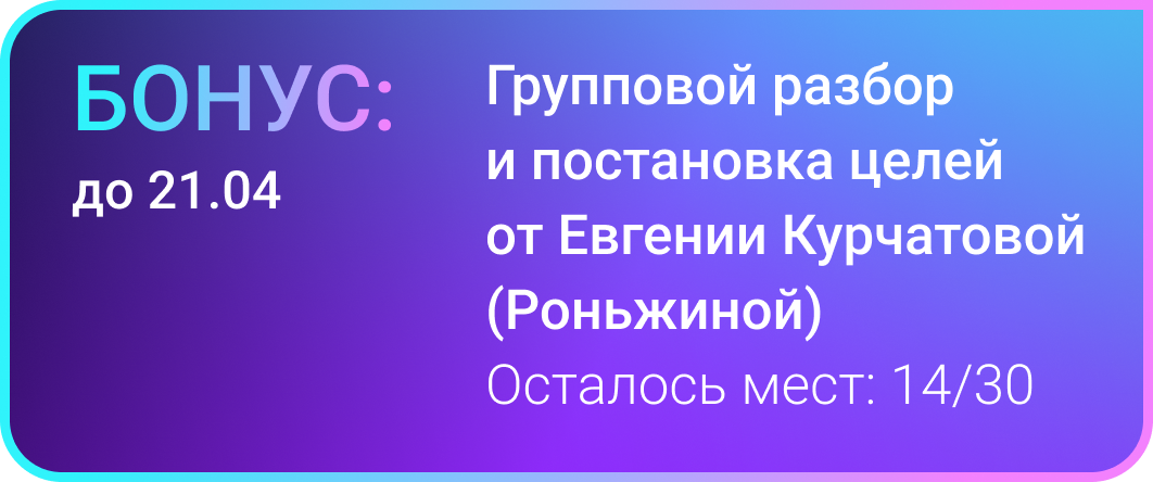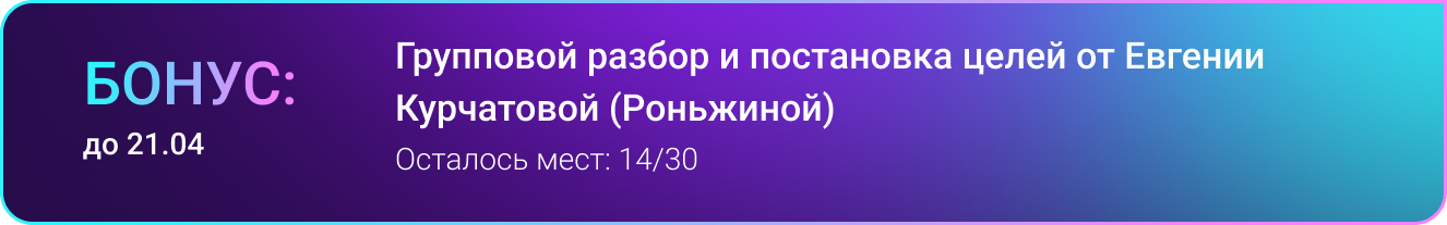 Групповая постановка целей на курс с наставниками и Евгенией Роньжиной (конкретный результат по окончании курса)