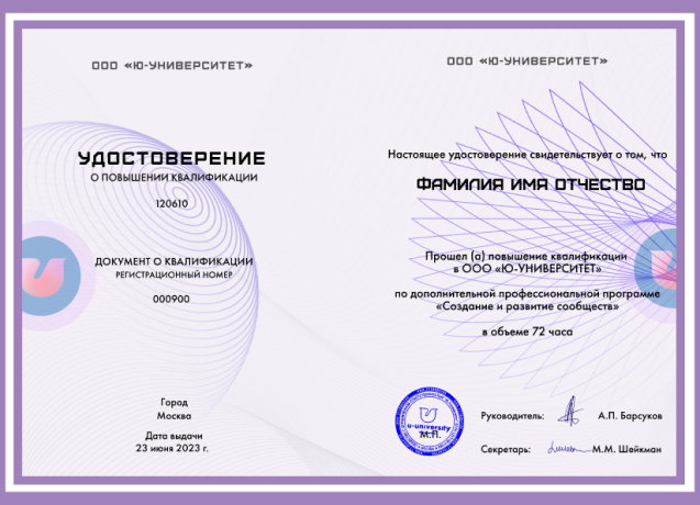 Удостоверение о повышении квалификации или сертификат о дополнительном образовании (при наличии соответствующих базовых документов)
